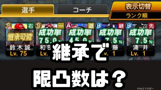 選手レベルは継承できませんが、「限界突破数」「特訓レベル」「特殊能力レベルの一部」を新しい選手に継承することができます。